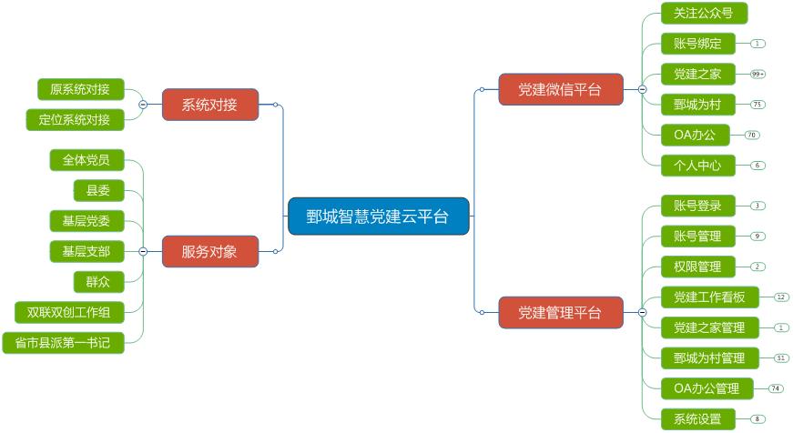 在本项目中党员管理台属于后台管理系统,除了具备基本的操作功能之外还能实现对微信平台的管理功能。主要包含八大模块,分别是账号登录、党建工作看板、权限管理、党建之家管理、OA办公、系统设置、账号管理。