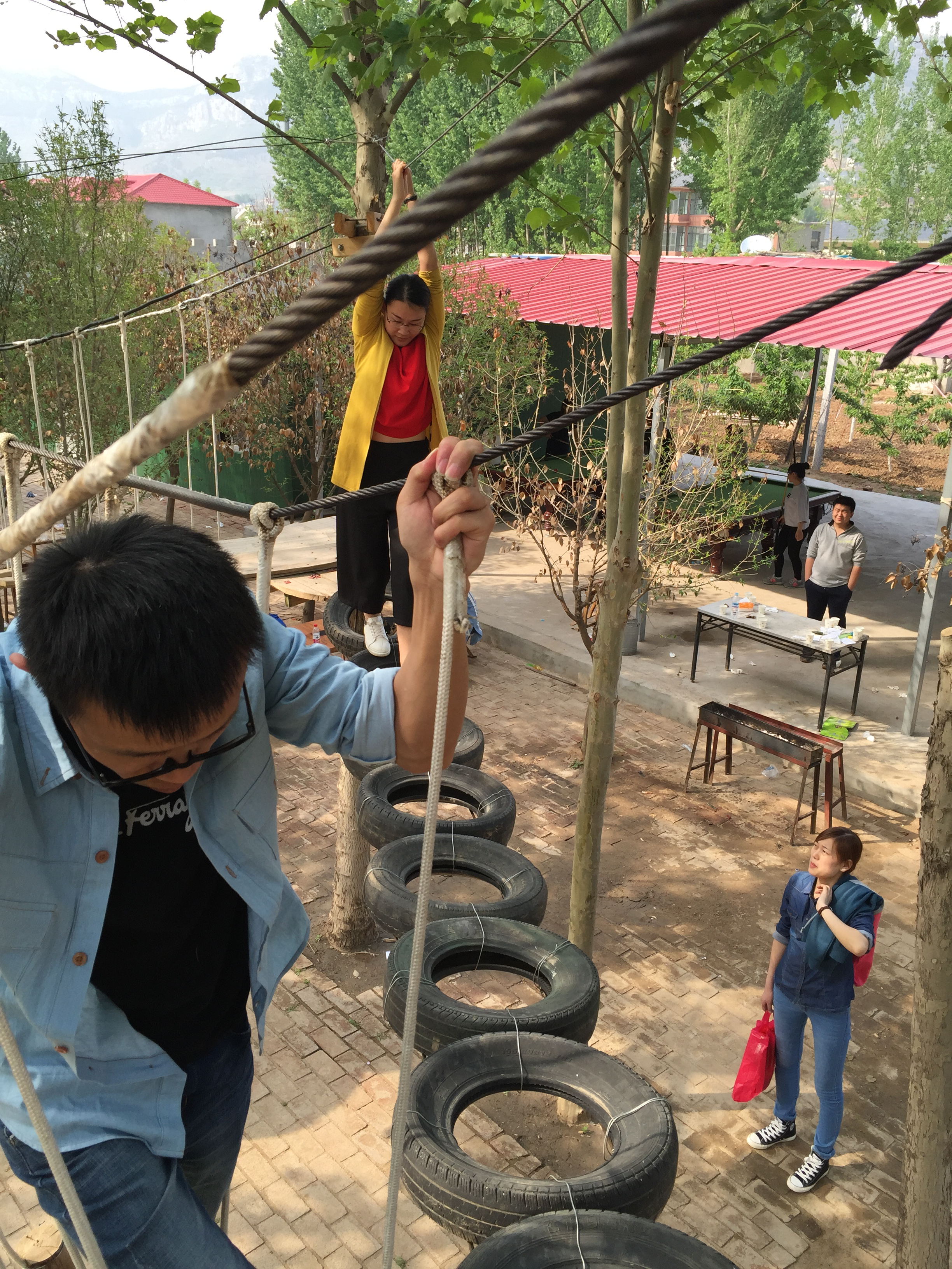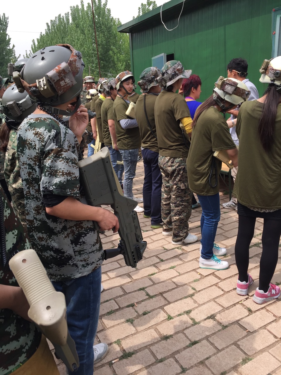 吃完饭,按照出游计划所有员工一起去玩真人CS,很多男生到了场地之后都跃跃欲试,换上服装真的仿佛进入了游戏中,迅速进入角色之后,大家都进入紧 张状态,你追我赶,躲避、主动出击,不断有人被“击中”。