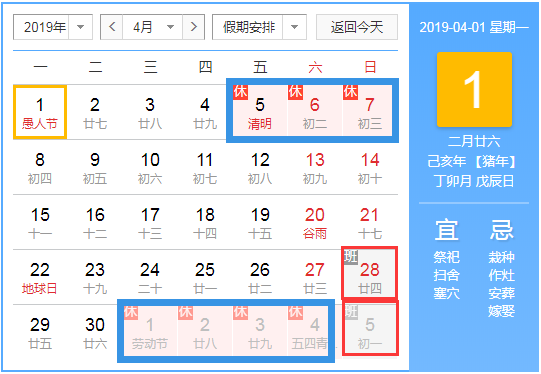 根据国家节假日放假规定,2019年清明节、五一劳动节放假安排如下: