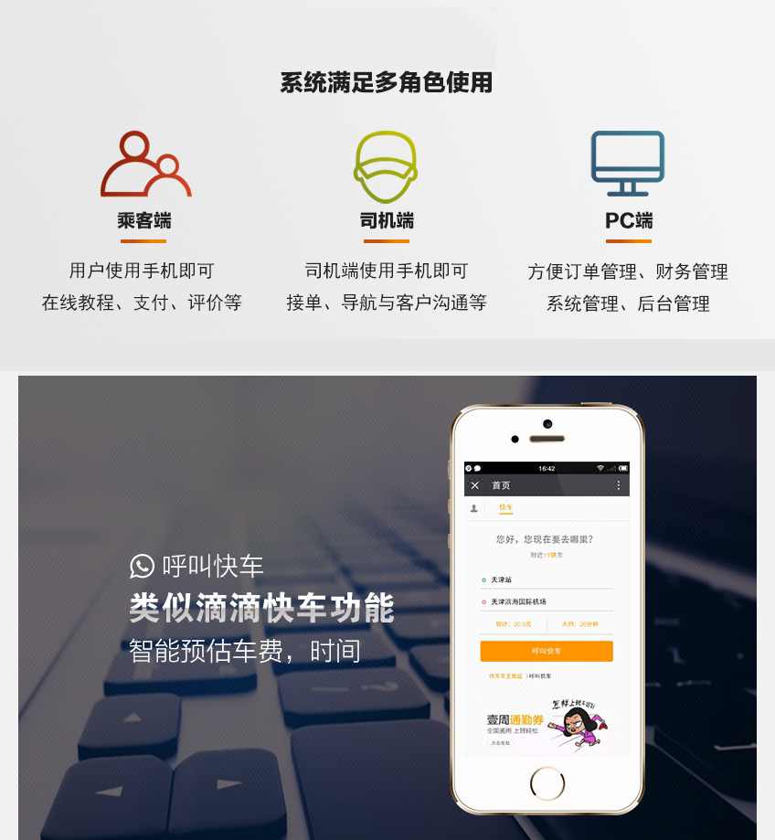 创新梦想网约车系统网约车乘客端的核心功能为地图定位、一键叫车、语音叫车、专车分类、预约用车、预估价格、在线支付、订单评价,投诉,司机端则包含司机认证、抢单操作、在线导航、订单管理、我的钱包等核心功能。 ...